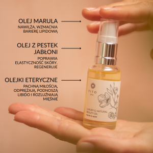 Olej marula i olej z pestek jabłoni – głęboko nawilżają, regenerują i poprawiają jędrność skóry.